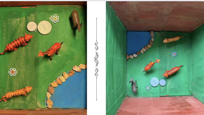 Recently, Anika and I decided to re use old cardboard boxes, plastic bottles, old plastic toys, and old beads to create a pretty show piece for my room. Just this much effort can save an animal’s life. It isn’t so hard!